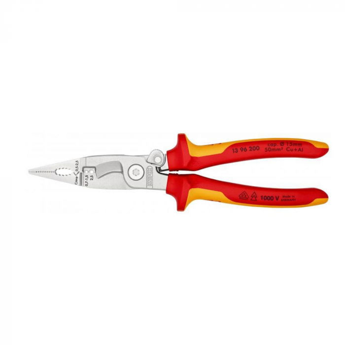 These pliers are ideal for cutting, stripping, crimping, and gripping, providing a compact and efficient solution for various electrical applications.