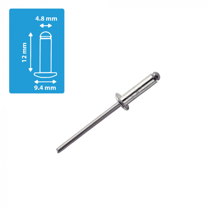 diameter 4.8mm x 12mm is perfect for the secure fixing of materials that are highly exposed to risk factors (humidity, temperature etc.) such as mounting mudguards, metal and plastic insulation, signaling and