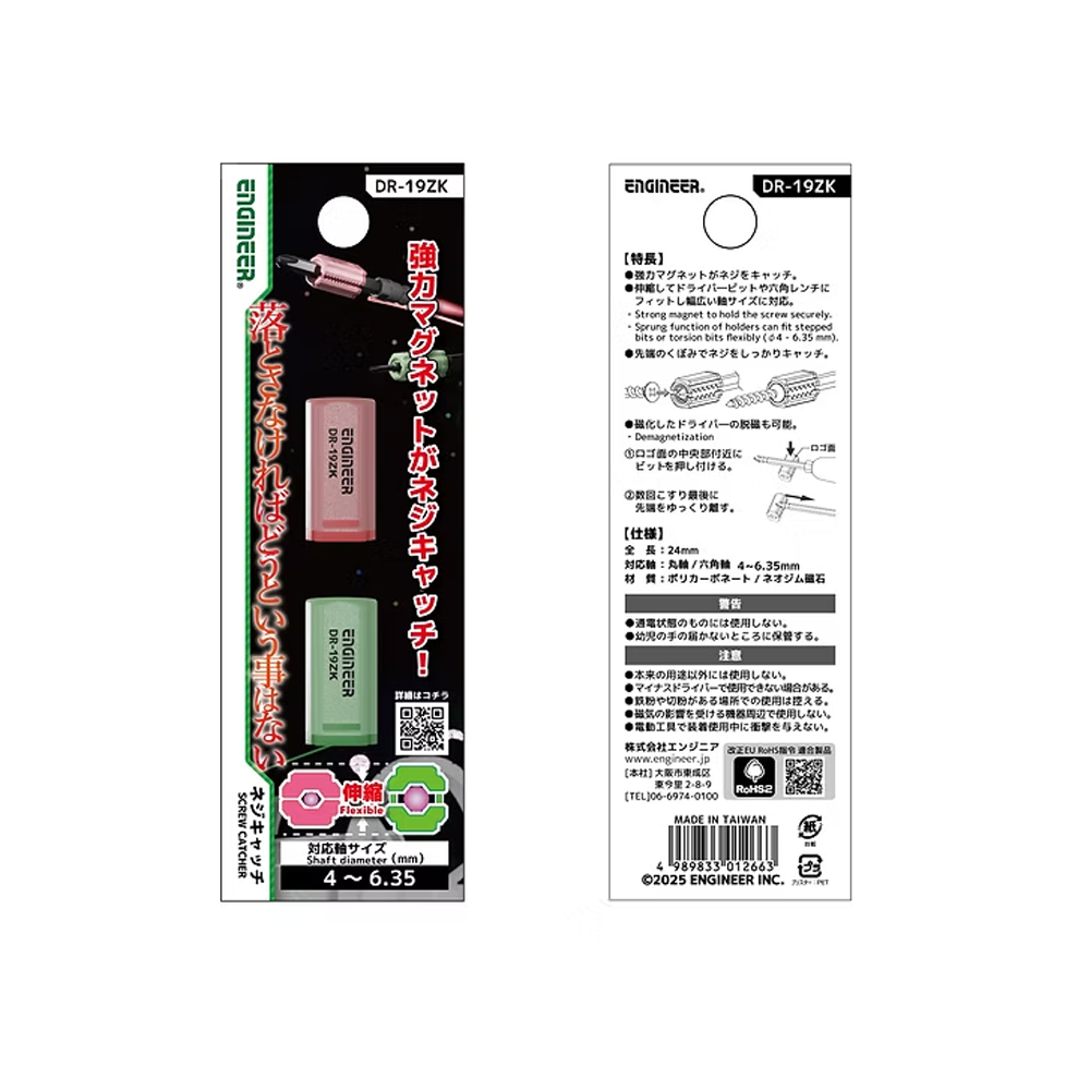 Manufactured in Japan, the DR-19ZK is made from high-quality materials, combining a durable body with a strong magnet to ensure consistent performance and long-lasting durability in professional use. Compatibility with bits and screwdrivers between 4 mm and 6.35 mm makes it extremely versatile, suitable for both manual use and power tools.